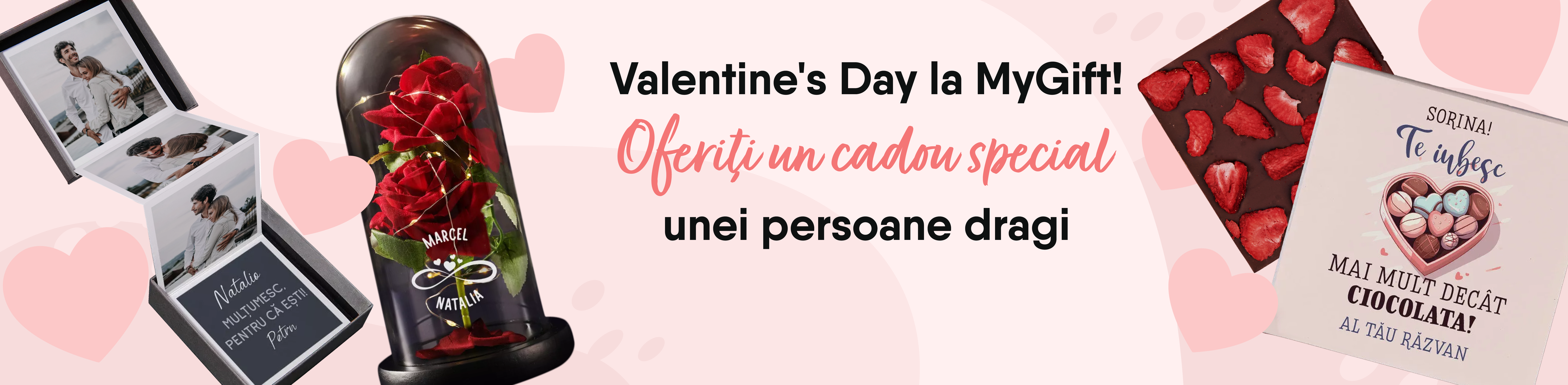 Cei dragi merită doar cele mai frumoase cadouri și asta vor primi dacă alegi ceva din colecția noastră. Am pregătit cadouri unice personalizate, perfect adaptate unei anumite persoane. De exemplu, mama ta, căreia ai vrea să-i dai toate comorile din lume. Dar înainte de a porni în căutarea acestor comori, consultați ideile noastre pentru cadou pentru mama. Aici vei găsi cadouri frumoase, simbolice, care vor fi suveniruri grozave, precum și gadgeturi practice care vor face viața de zi cu zi mai plăcută. Totul, desigur, personalizat special pentru mama ta. Daca esti in cautarea unei idei de cadou pentru o alta femeie importanta din viata ta, adica persoana iubita, vezi ce ti-am pregatit in cadourile personalizate pentru categoria ei. Poti alege ceva romantic sau practic, sau poti alege un cadou amuzant. Întrucât am menționat un cadou pentru ea, mai merită să subliniem că la noi poți alege cu ușurință și cadou pentru iubit, soț sau logodnic. Și găsirea unei idei bune de cadou pentru el poate fi o sarcină foarte dificilă!Cadou personalizat - cel mai frumos suvenir