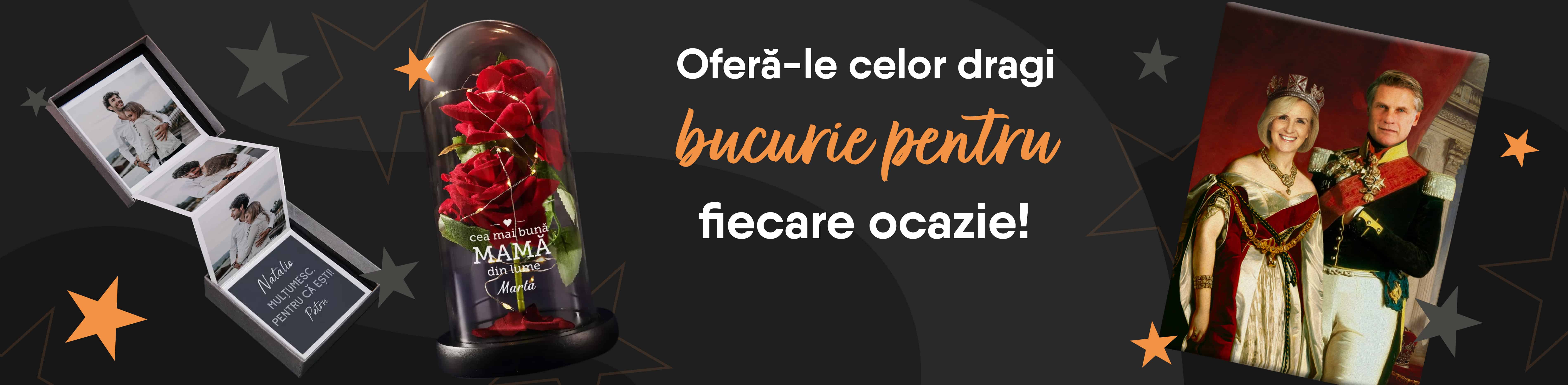 Sunt atât de multe oportunități încât – dacă insisti – vei găsi ceva în fiecare zi. Nu se poate nega că tuturor ne place să sărbătorim, iar cu o asemenea frecvență nu este întotdeauna posibil să venim cu ideea potrivită pentru un cadou. În afară de ocazii precum Ziua Morcovului sau Ziua Mondială a Elefantului, există încă o mulțime. Cand ne pregatim cadourile personalizate, tinem cont de toate posibilitatile, astfel incat sa poti potrivi perfect cadoul tau. Mai ales când trebuie să cumperi multe dintre ele și timpul se scurge. Cred că știm cu toții că este vorba despre nebunia cumpărăturilor care începe undeva la sfârșitul lunii noiembrie. Atunci cadourile personalizate online vor fi o soluție perfectă. Aici vei găsi visul tău Cadou de Crăciun. Fără stres și bătăi de cap, vei alege ceva pentru întreaga familie și toți prietenii tăi. Atât când vine vorba de idei de cadouri cu motive speciale de Crăciun, cât și de cadouri mai universale, potrivite pentru multe ocazii. De exemplu, ziua numelui, la urma urmei, cineva o sărbătorește în fiecare zi, nu? Acesta este un moment bun pentru a răsfoi cadourile noastre online și pentru a alege ceva special. Colecția noastră include și idei originale pentru cadouri de ziua de naștere, cadouri speciale pentru nunți și aniversări, mărunțișuri drăguțe pentru botez sau împărtășire și multe, multe altele.Cadouri online pentru cei dragi