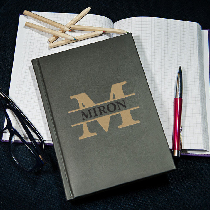 Caiet A5 cu personalizare a monogramului este un accesoriu elegant și practic. Este unic și funcțional.