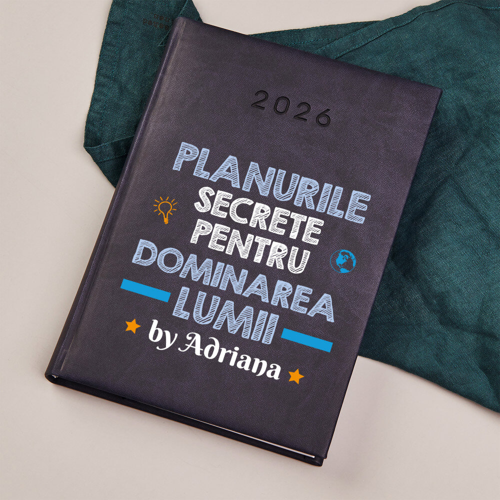 Calendar tip carte, de înaltă calitate în format A5.Învelișul calendarului a fost făcut din material mat, catifelat, plăcut la atingere .