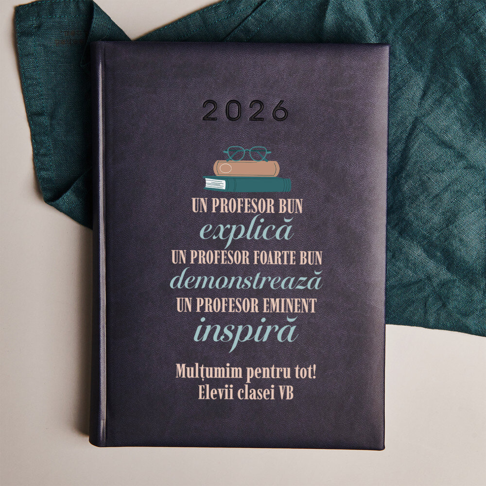 Calendar tip carte, de înaltă calitate în format A5.Învelișul calendarului a fost făcut din material mat, catifelat, plăcut la atingere .