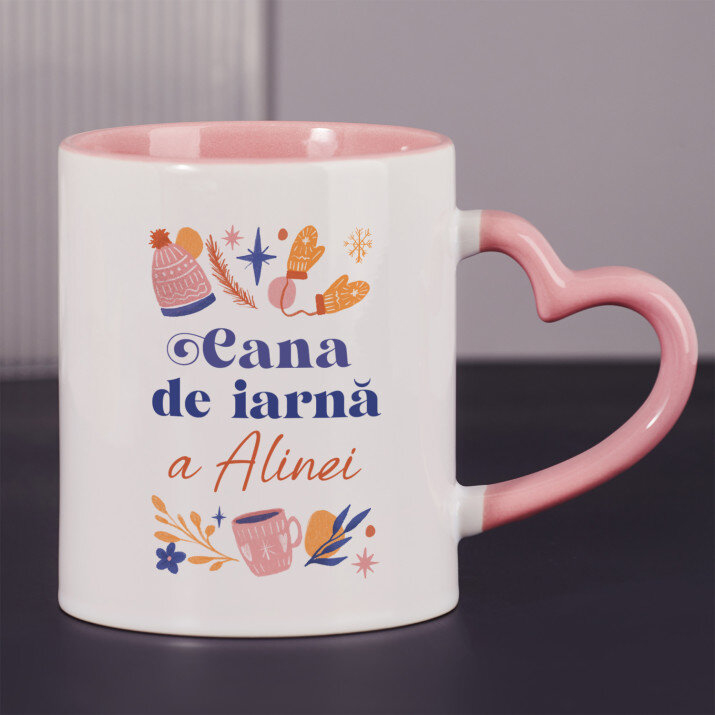 Sunt disponibile și căni cu un mâner în formă de inimă și un interior roz, capacitate de 330 ml