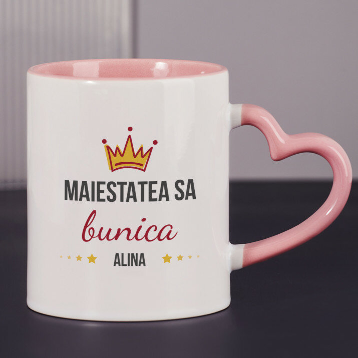Sunt disponibile și căni cu un mâner în formă de inimă și un interior roz, capacitate de 330 ml