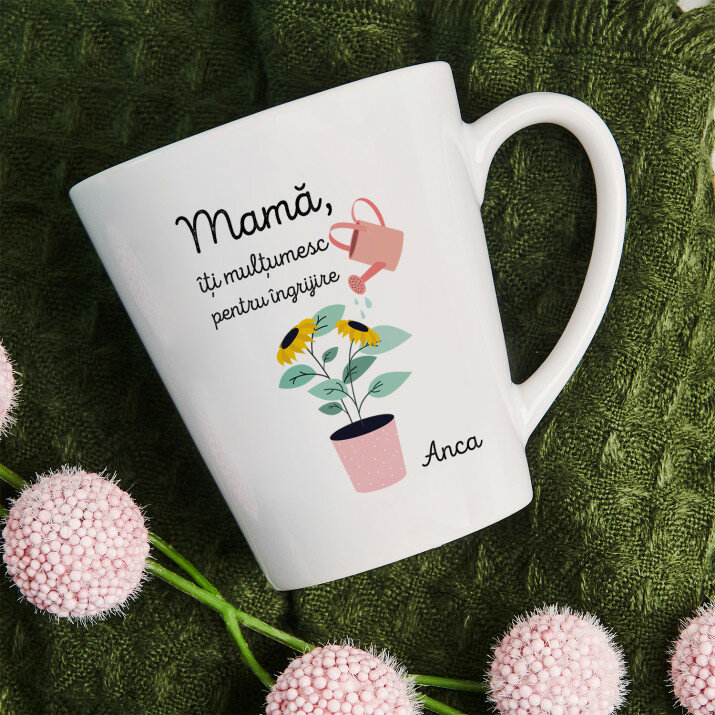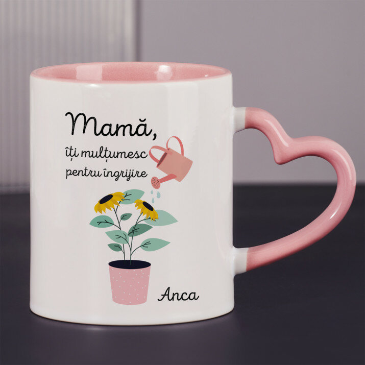 Sunt disponibile și căni cu un mâner în formă de inimă și un interior roz, capacitate de 330 ml