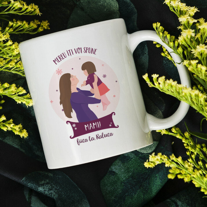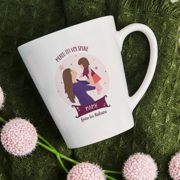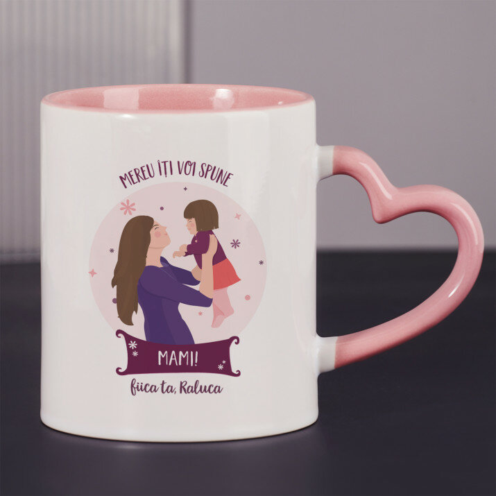 Sunt disponibile și căni cu un mâner în formă de inimă și un interior roz, capacitate de 330 ml