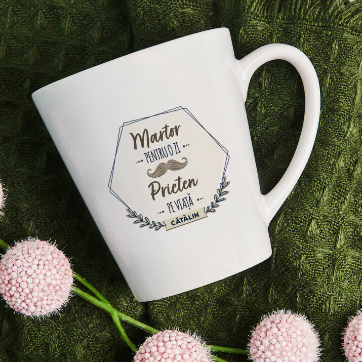 Acest ceșcuț este un cadou ideal pentru naș. Personalizarea îi conferă un caracter aparte.