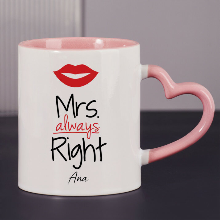 Sunt disponibile și căni cu un mâner în formă de inimă și un interior roz, capacitate de 330 ml