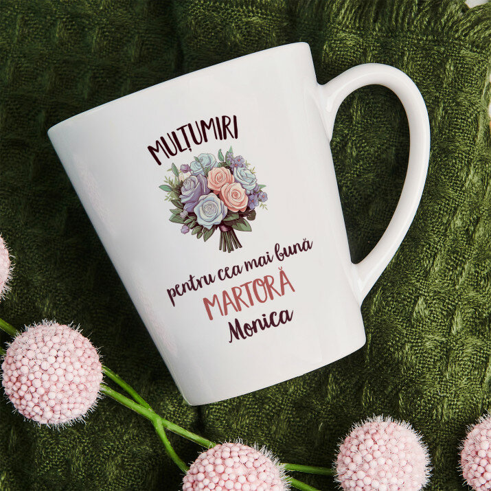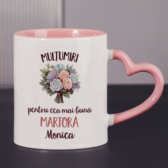 Sunt disponibile și căni cu un mâner în formă de inimă și un interior roz, capacitate de 330 ml