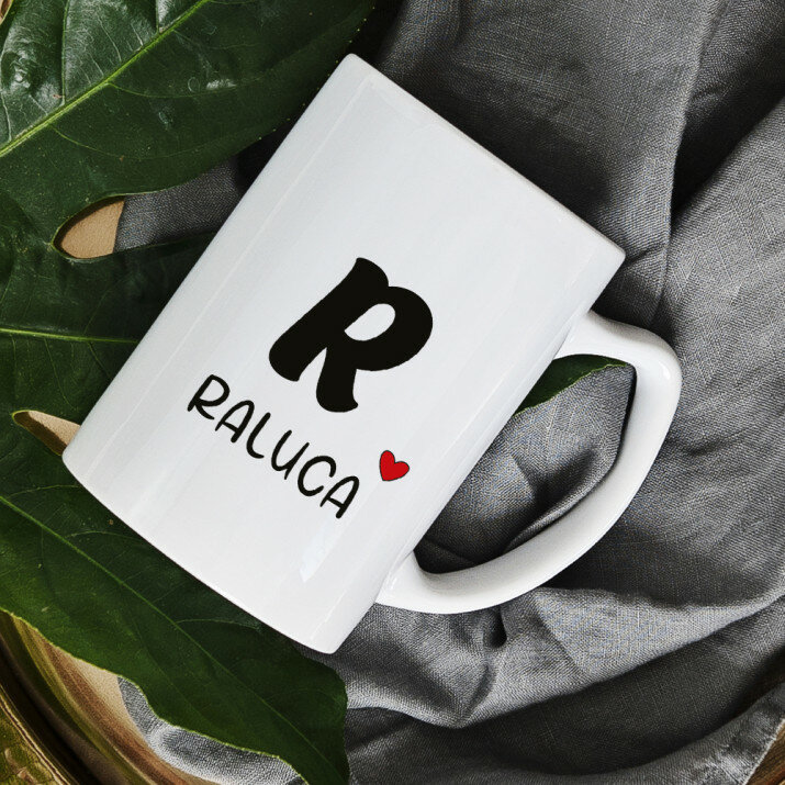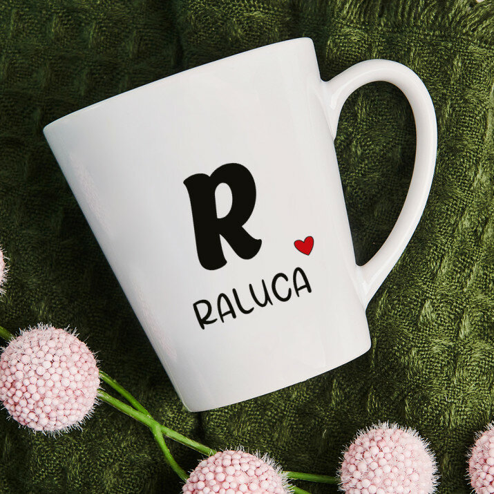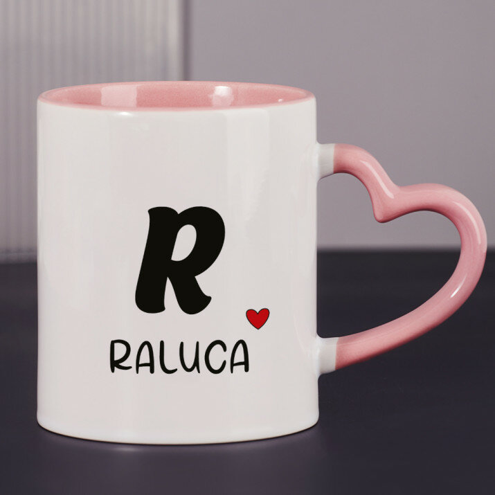 Sunt disponibile și căni cu un mâner în formă de inimă și un interior roz, capacitate de 330 ml