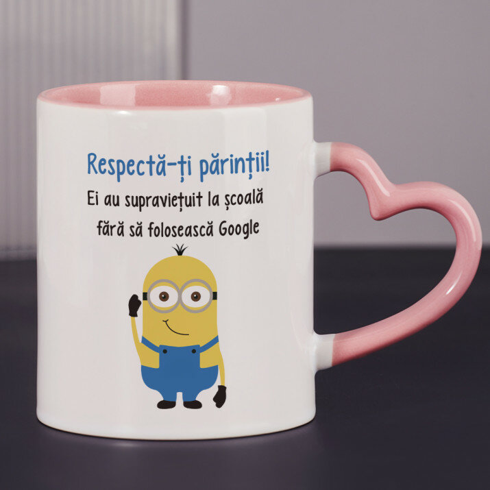 Sunt disponibile și căni cu un mâner în formă de inimă și un interior roz, capacitate de 330 ml