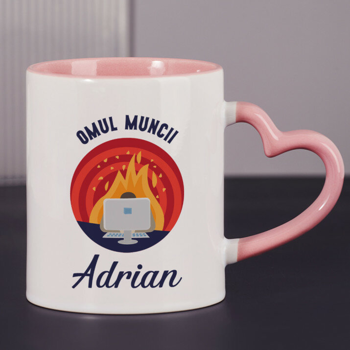 Sunt disponibile și căni cu un mâner în formă de inimă și un interior roz, capacitate de 330 ml