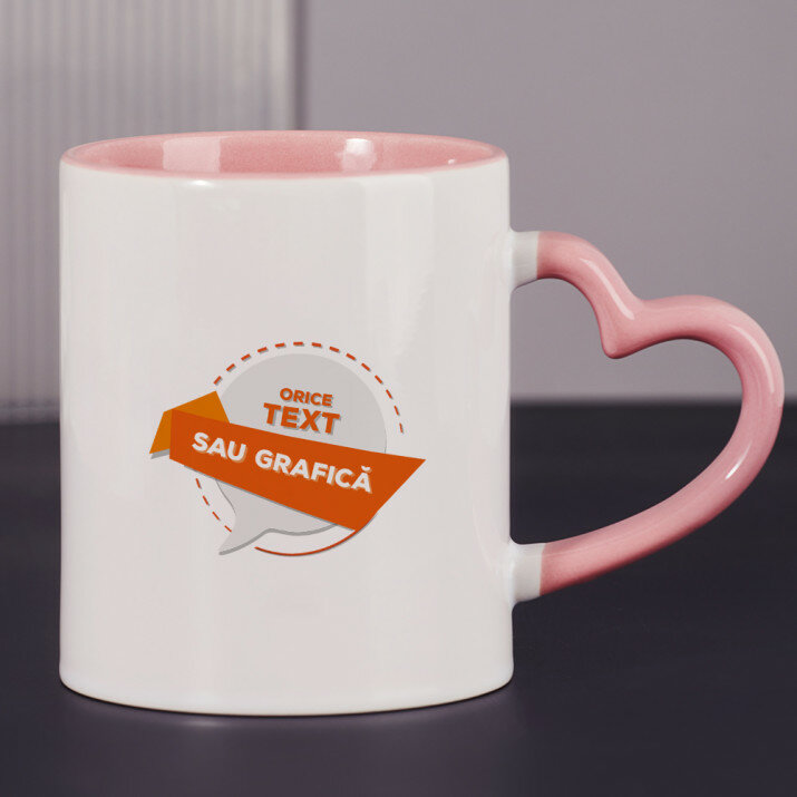 Sunt disponibile și căni cu un mâner în formă de inimă și un interior roz, capacitate de 330 ml