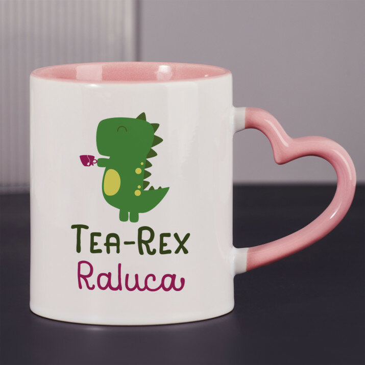 Sunt disponibile și căni cu un mâner în formă de inimă și un interior roz, capacitate de 330 ml