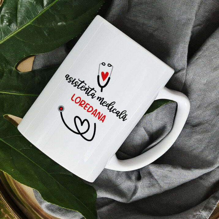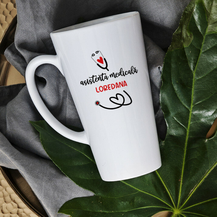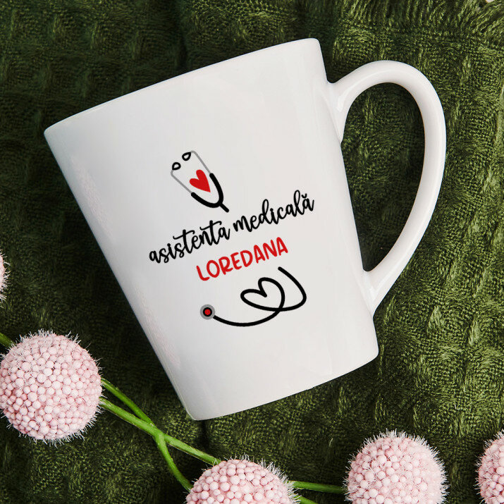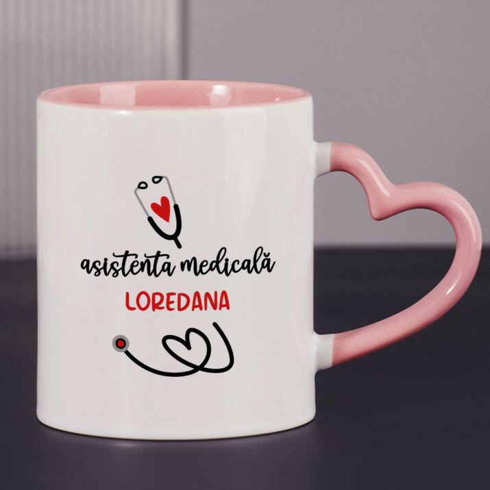 Sunt disponibile și căni cu un mâner în formă de inimă și un interior roz, capacitate de 330 ml