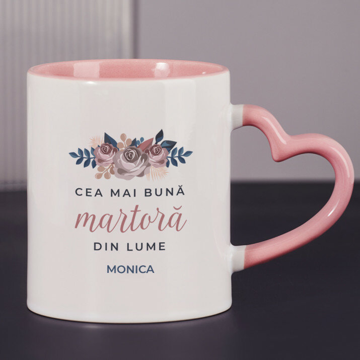 Sunt disponibile și căni cu un mâner în formă de inimă și un interior roz, capacitate de 330 ml