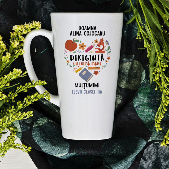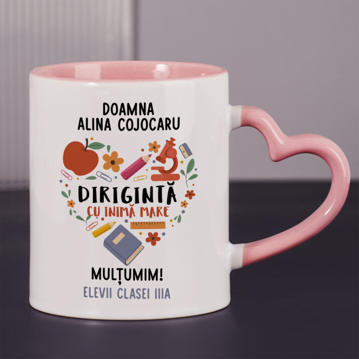 Sunt disponibile și căni cu un mâner în formă de inimă și un interior roz, capacitate de 330 ml