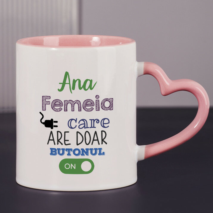 Sunt disponibile și căni cu un mâner în formă de inimă și un interior roz, capacitate de 330 ml