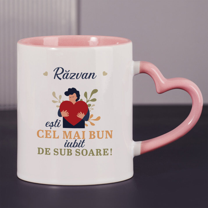 Sunt disponibile și căni cu un mâner în formă de inimă și un interior roz, capacitate de 330 ml