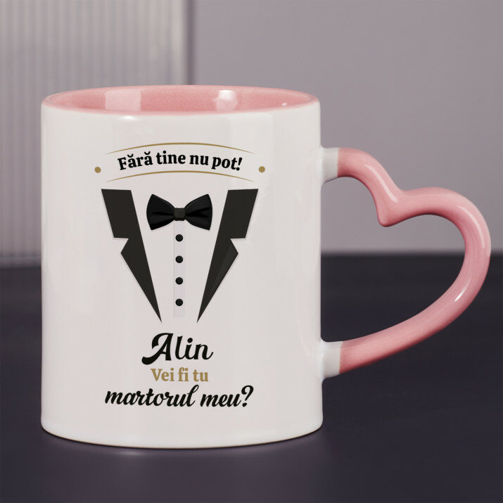Sunt disponibile și căni cu un mâner în formă de inimă și un interior roz, capacitate de 330 ml