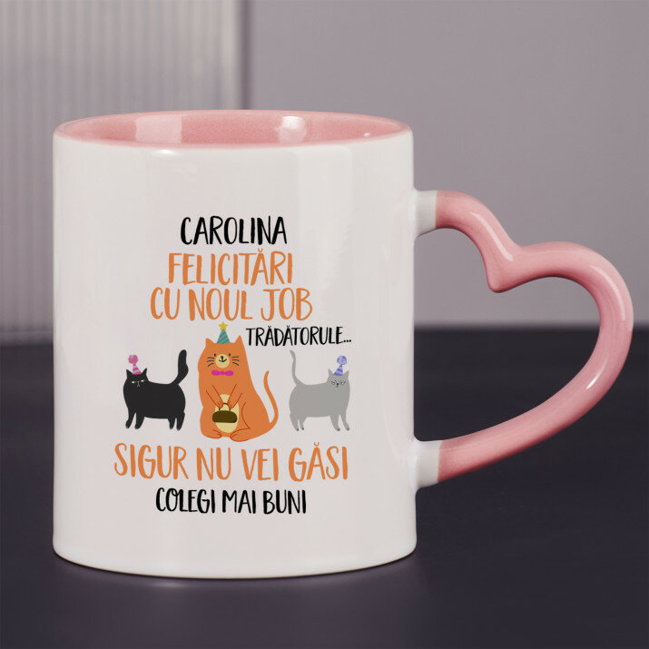 Sunt disponibile și căni cu un mâner în formă de inimă și un interior roz, capacitate de 330 ml