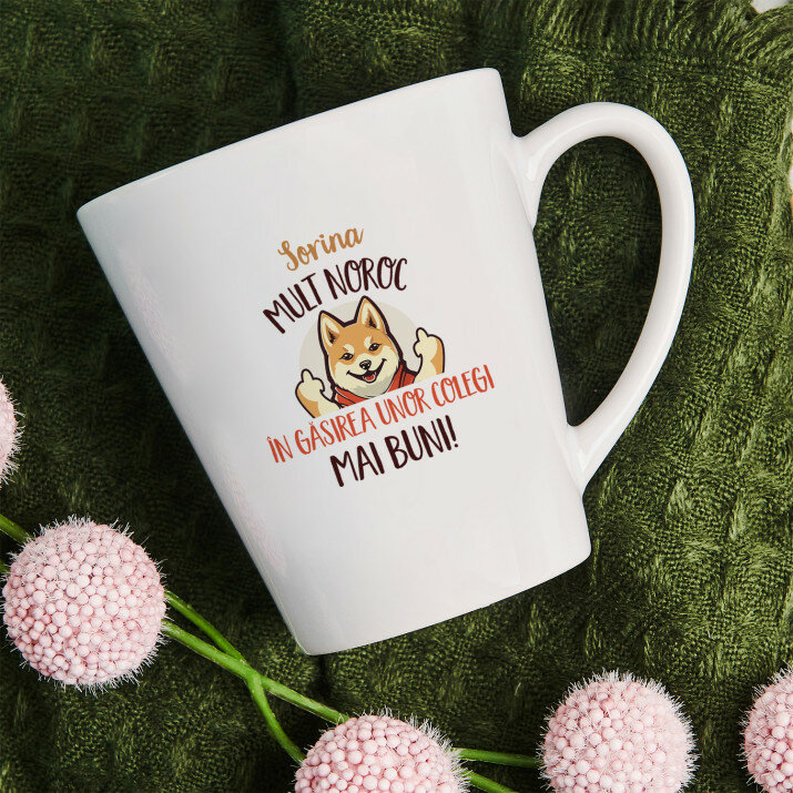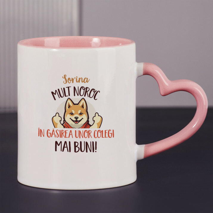 Sunt disponibile și căni cu un mâner în formă de inimă și un interior roz, capacitate de 330 ml