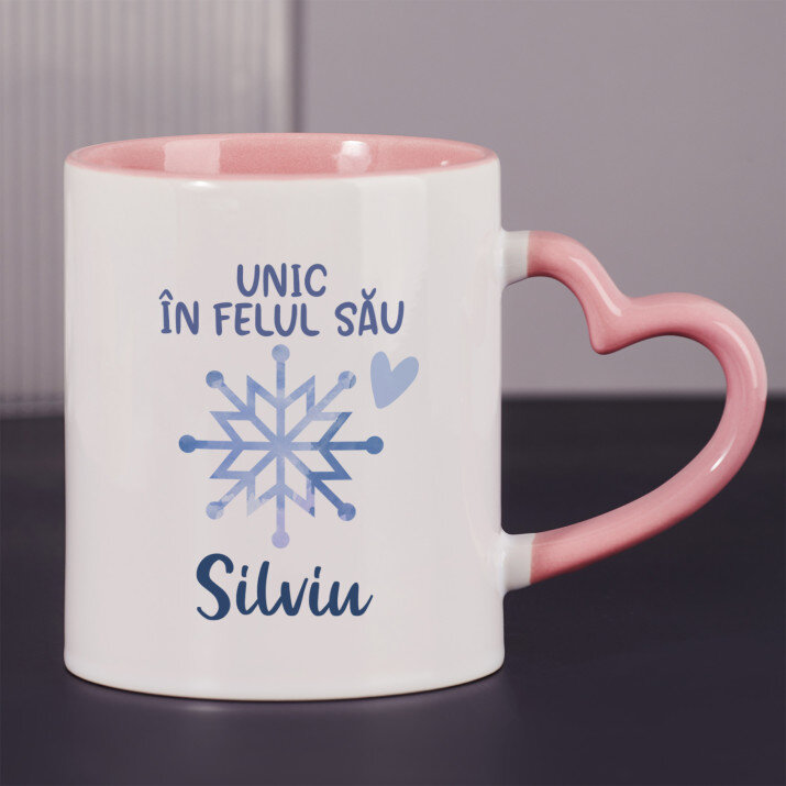 Sunt disponibile și căni cu un mâner în formă de inimă și un interior roz, capacitate de 330 ml