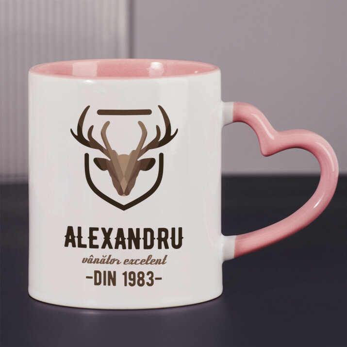 Sunt disponibile și căni cu un mâner în formă de inimă și un interior roz, capacitate de 330 ml
