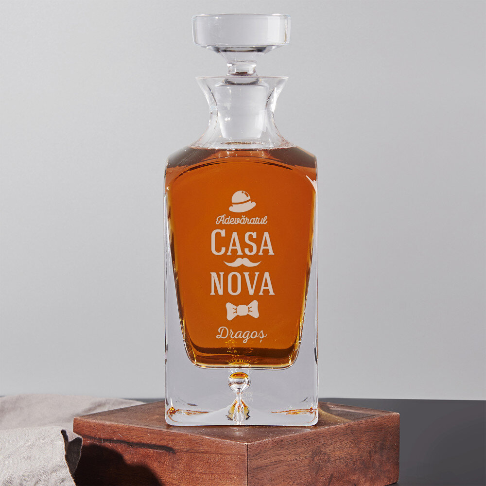 Carafa gravată pentru whisky 'El nu îmbătrânește' este un cadou deosebit. Personalizarea și eleganța executării impresionează.