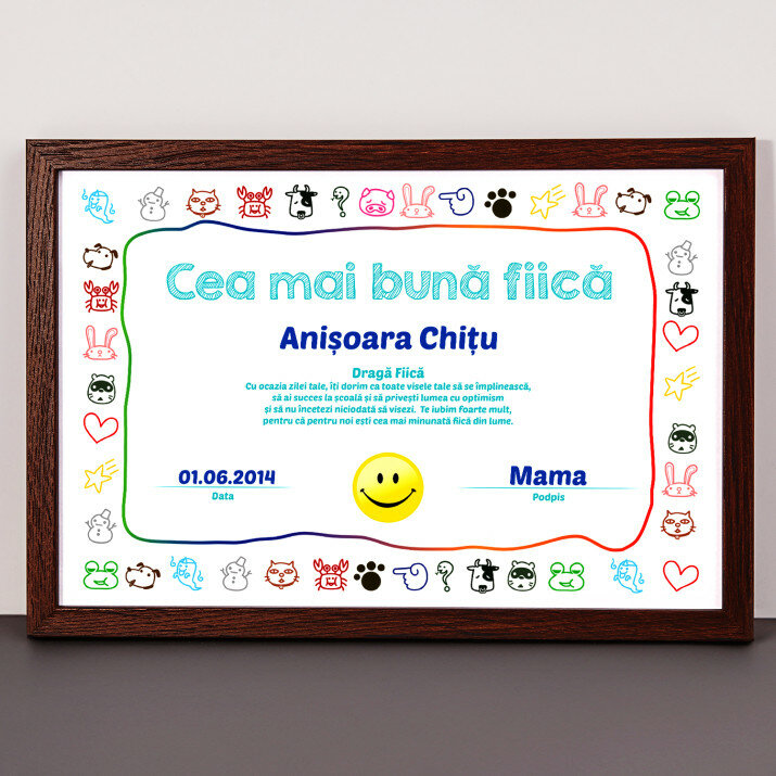 Certificatul 'Cea Mai Bună Mamă' este o idee minunată pentru un cadou. Textul este emoționant, iar posibilitatea de personalizare îi adaugă și mai multă valoare.