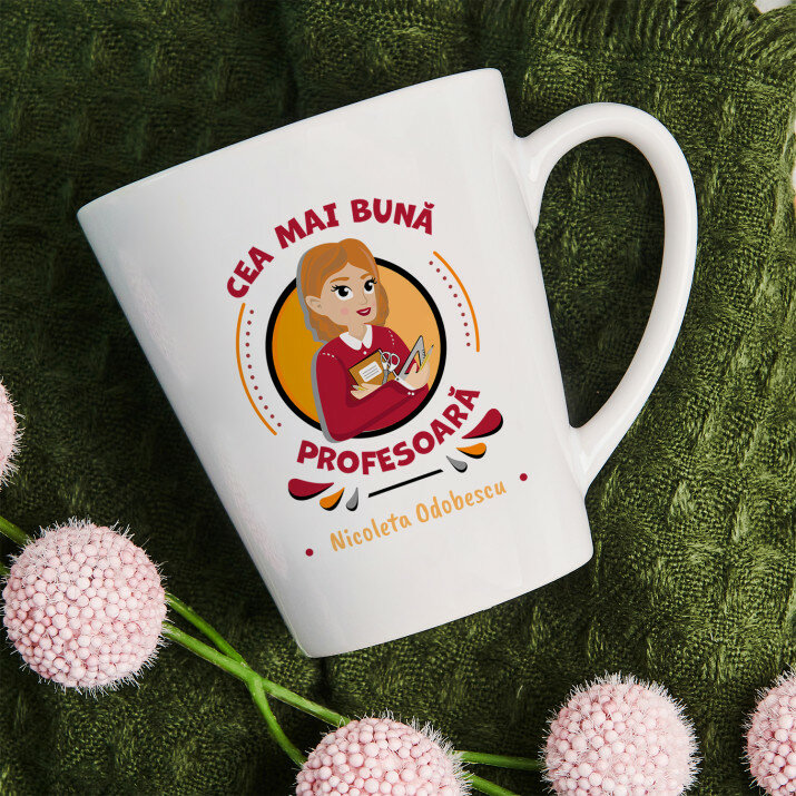 Acest ceașcă este un cadou ideal, având posibilitatea de a adăuga numele propriu.