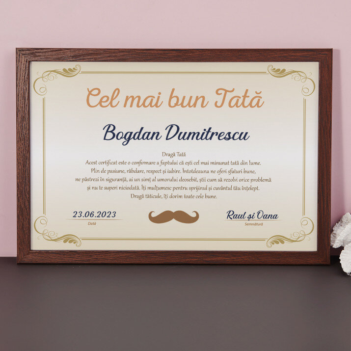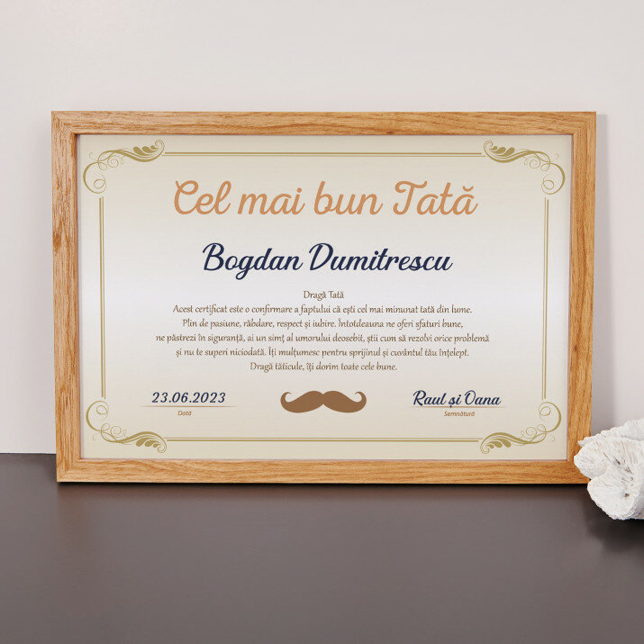 Acesta nu este doar un certificat, este o expresie de recunoștință și iubire pentru tatăl meu. Personalizarea îl face încă mai special.