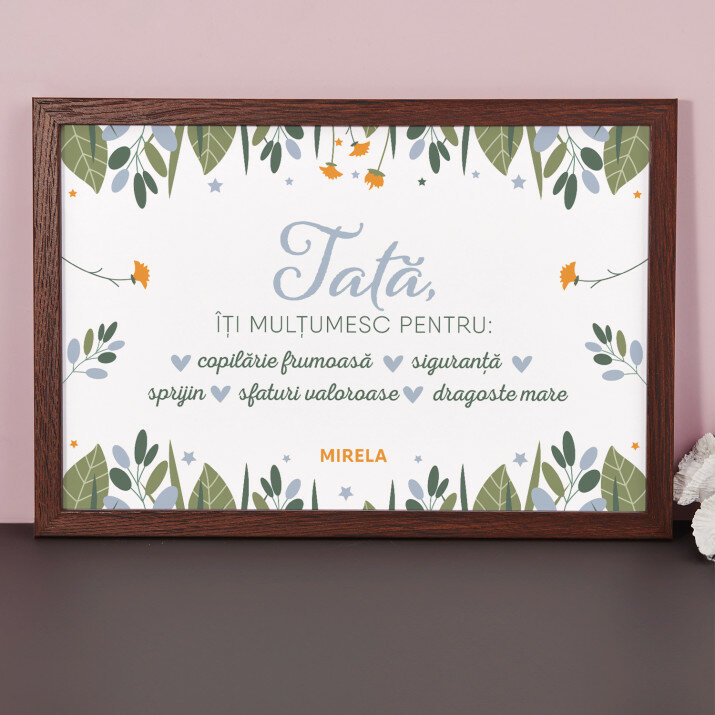 Certificatul este imprimat pe hârtie fotografică de 20x30 cm și încadrat într-o ramă elegantă de 20x30 cm.