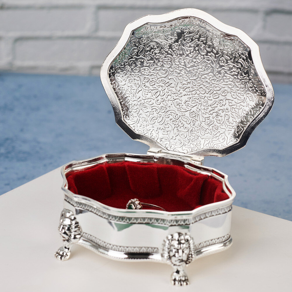 Această cutie de bijuterii argintie este un cadou perfect pentru aniversarea căsătoriei. Este elegantă și realizată cu grijă.