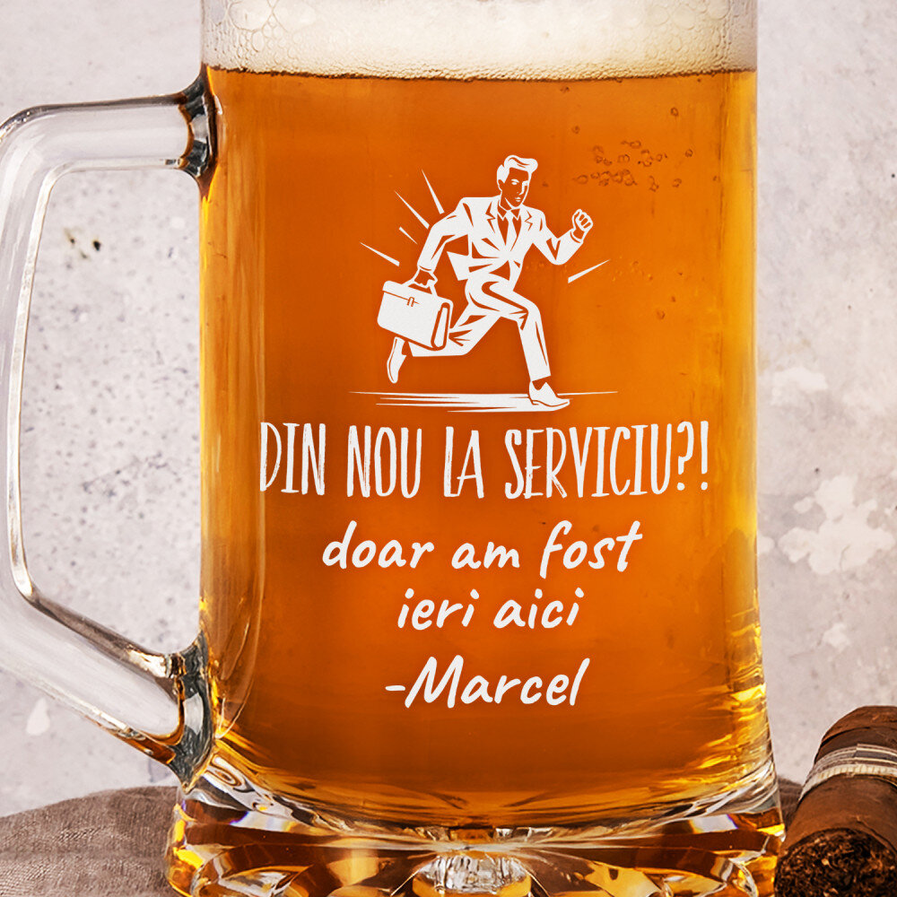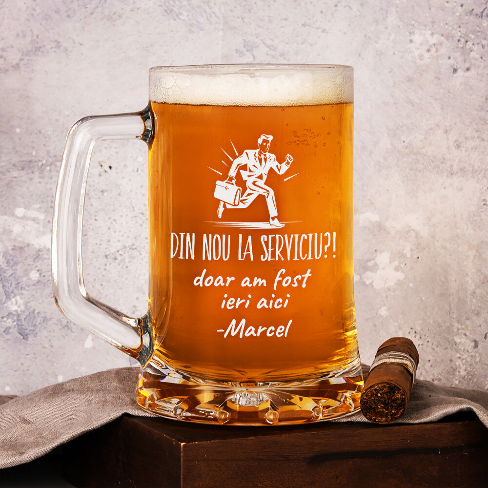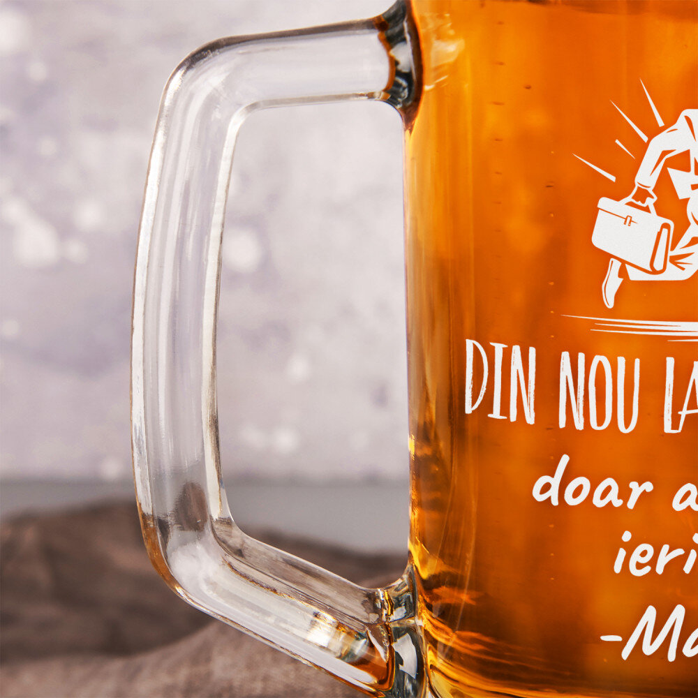 Halba de bere realizată din sticlă de înaltă calitate este extrem de durabilă și rezistentă la opacizare și zgâriere. Dispune de un mâner confortabil pentru confort și siguranță în timpul utilizării. O gravură personalizată va fi plasată pe suprafața perfect netedă. Halba de bere este un cadou excelent pentru un iubitor al băuturii aurii. Reprezintă un cadou excelent pentru multe ocazii!