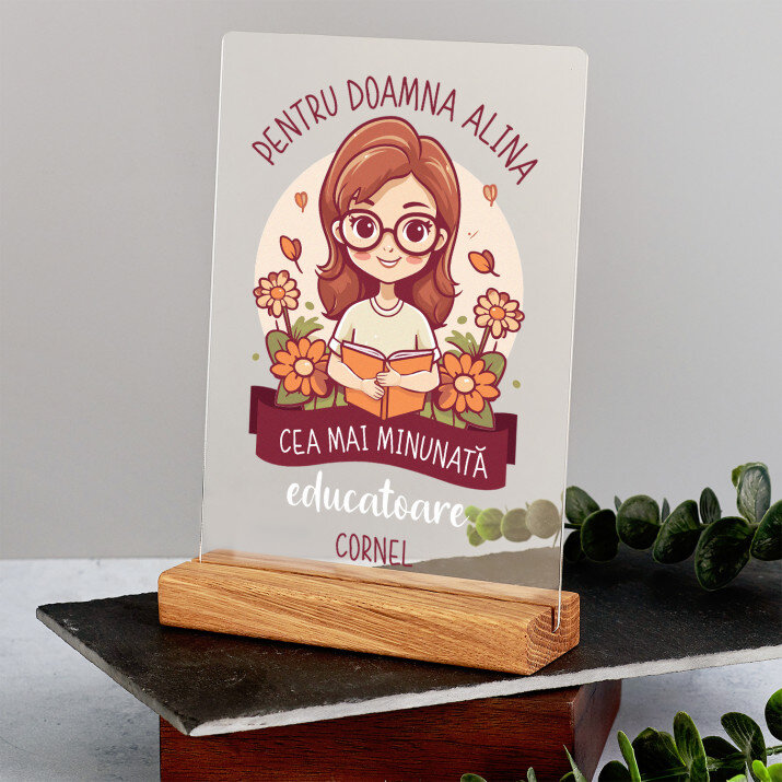 O amintire unică care va încânta destinatarul! Imprimare pe sticlă acrilică (plexiglas) transparentă de 2 mm grosime, acesta este un cadou care va rezista ani de zile. Materialul se distinge prin calitatea excelentă a suprafeței și rigiditatea sa, este rezistent la deteriorări și la condițiile meteorologice. Datorită suportului elegant din lemn, imprimeul poate fi așezat imediat pe un raft. Garantăm că va fi o surpriză minunată pentru cei dragi!