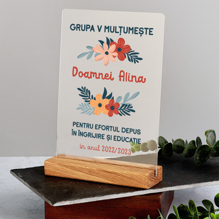 O amintire unică care va încânta destinatarul! Imprimare pe sticlă acrilică (plexiglas) transparentă de 2 mm grosime, acesta este un cadou care va rezista ani de zile. Materialul se distinge prin calitatea excelentă a suprafeței și rigiditatea sa, este rezistent la deteriorări și la condițiile meteorologice. Datorită suportului elegant din lemn, imprimeul poate fi așezat imediat pe un raft. Garantăm că va fi o surpriză minunată pentru cei dragi!Vă oferim diverse opțiuni pentru această imprimare:
