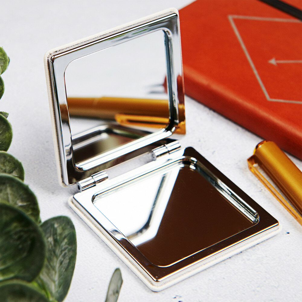 O oglindă de buzunar, incasabilă, realizată din metal lustruit și acoperită cu piele ecologică de culoare albă. Produsul oferă atât oglindă standard, cât și cea de mărire, pentru o utilizare confortabilă în orice condiții. Designul elegant și atemporal va satisface toate gusturile. Este un accesoriu indispensabil pentru geanta unei femei.