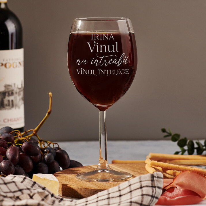 Paharul negru pentru vin este o idee excelentă de cadou pentru orice fan al designului interior modern! Culorile originale și sticla lucioasă atrag atenția asupra lor și accentuează aspectul unic al produsului. Forma clasică se va potrivi perfect cu orice veselă și decor de pe masă. Paharul poate fi spălat în mașina de spălat vase, ceea ce va face cu siguranță mai ușoară curățarea după o cină atmosferică. La aceasta se adaugă o gravare personalizată efectuată pe el, ceea ce îl face un cadou unic pentru o persoană dragă!Informații detaliate: