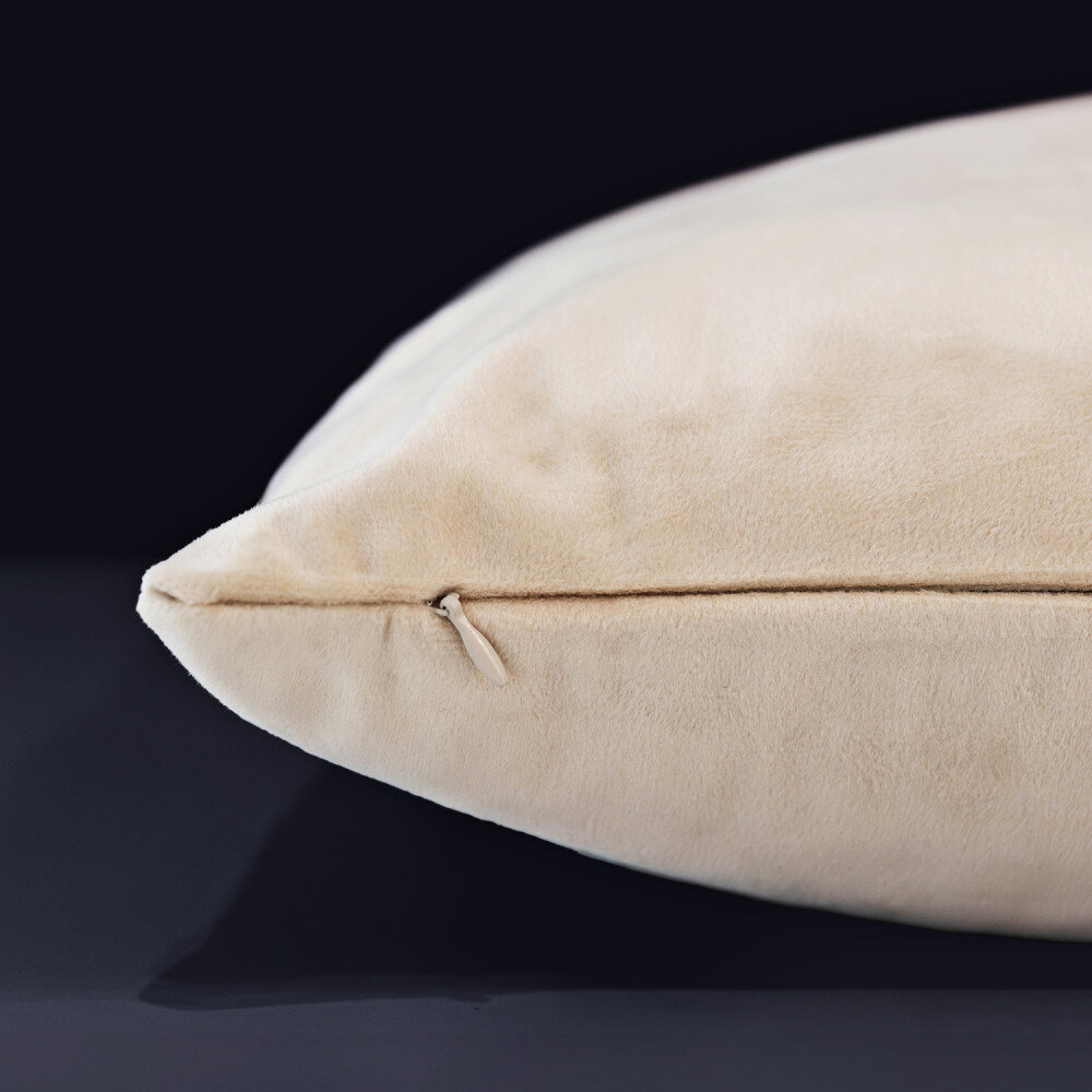 Pernă din bumbac cu dimensiunile de 50 x 50 cm și o grosime de 13/15 cm. Are o umplutură moale și elastică din fibre de poliester de culoare albă. Perna se adaptează la forma corpului și revine rapid la starea sa naturală. Umplutura nu conține alergeni și este imaculată. Fabricată din țesătură groasă, fața de pernă nu se va decolora și nu se va șterge. Există două culori din care puteți alege: gri și bej. Fața de pernă are o închidere cu fermoar.