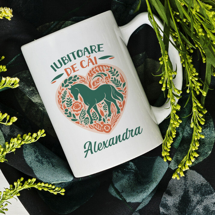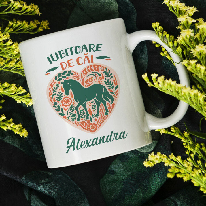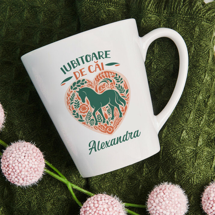 Sunt disponibile și căni cu un mâner în formă de inimă și un interior roz, capacitate de 330 ml