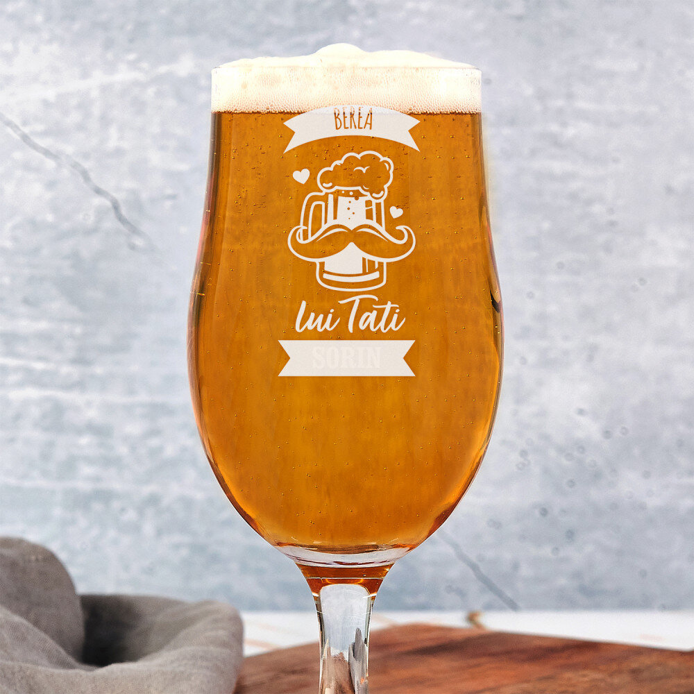 Un pocal de bere elegant, realizat din sticlă de înaltă calitate, va îmbogăți celebrarea oricărei ocazii. Forma distinctivă din linia Tulipe îți permite să te bucuri pe deplin de modul în care este servită băutura ta preferată, precum și de gustul și aroma acesteia. Produsul este durabil și rezistent la zgârieturi . O gravură personalizată va fi plasată pe suprafața perfect netedă. Producătorul este renumita companie turcească Pasabahce.