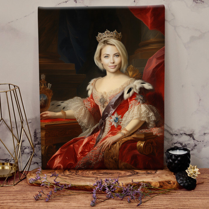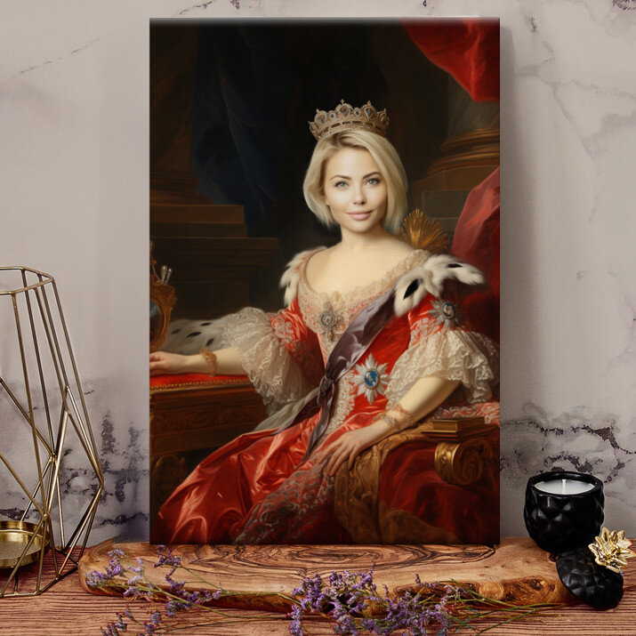 Fii tu eroul Portretului Regal, o imprimare unică, care va fi creată din fotografia trimisă de tine . Un cadou nemaipomenit, datorită căruia persoana iubită se poate simți prințesă, general de armată sau chiar rege! Tot ce ai nevoie este o fotografie de bună calitate, pentru ca graficianul nostru să realizeze un design profesional în stilul ales de Tine. Odată ce ai aprobat designul, vom crea un cadou care îi va impresiona pe cei dragi.REALIZAREA