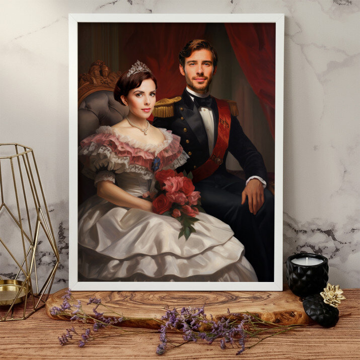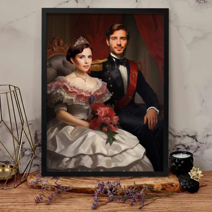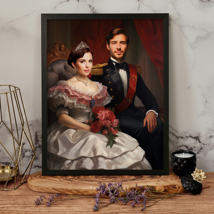 Fii tu eroul Portretului Regal, o imprimare unică, care va fi creată din fotografia trimisă de tine . Un cadou nemaipomenit, datorită căruia persoana iubită se poate simți prințesă, general de armată sau chiar rege! Tot ce ai nevoie este o fotografie de bună calitate, pentru ca graficianul nostru să realizeze un design profesional în stilul ales de Tine. Odată ce ai aprobat designul, vom crea un cadou care îi va impresiona pe cei dragi.REALIZAREA