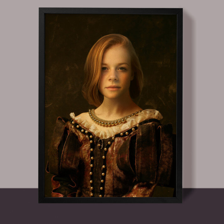 Fii tu eroul Portretului Regal, o imprimare unică, care va fi creată din fotografia trimisă de tine . Un cadou nemaipomenit, datorită căruia persoana iubită se poate simți prințesă, general de armată sau chiar rege! Tot ce ai nevoie este o fotografie de bună calitate, pentru ca graficianul nostru să realizeze un design profesional în stilul ales de Tine. Odată ce ai aprobat designul, vom crea un cadou care îi va impresiona pe cei dragi.REALIZAREA