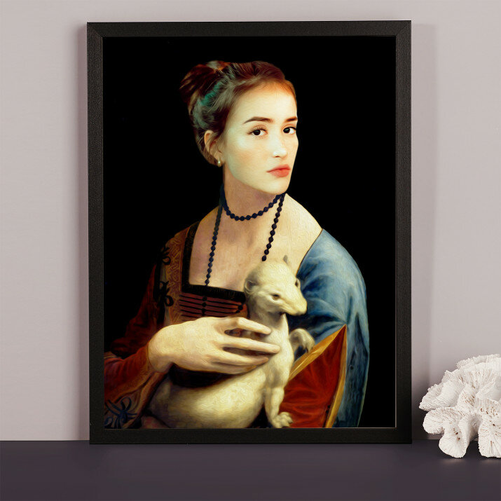 Acest tablou pe pânză este o adevărată operă de artă. Femeia cu hermină se distinge prin frumusețea sa estetică clasică, iar calitatea execuției este impresionantă.