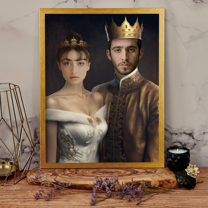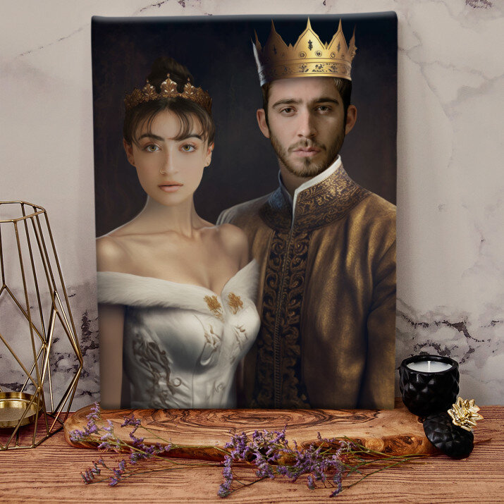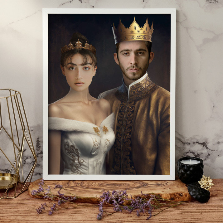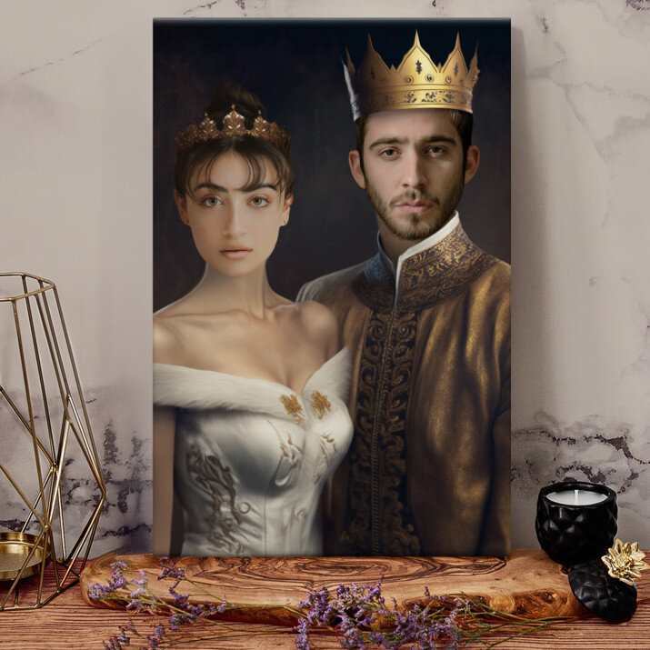 Tabloul pe pânză 'Stăpânii - Portret Regal' este un element decorativ deosebit. Majestic și elegant.