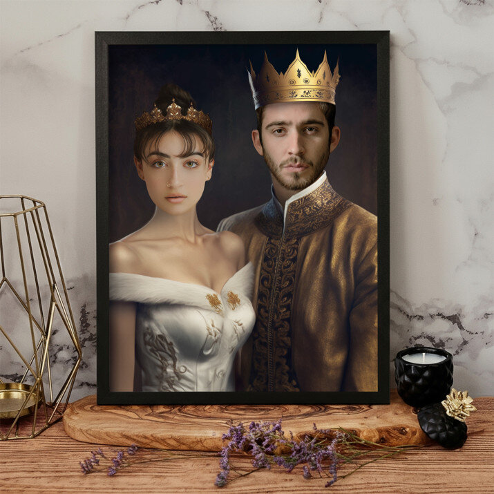 Fii tu eroul Portretului Regal, o imprimare unică, care va fi creată din fotografia trimisă de tine . Un cadou nemaipomenit, datorită căruia persoana iubită se poate simți prințesă, general de armată sau chiar rege! Tot ce ai nevoie este o fotografie de bună calitate, pentru ca graficianul nostru să realizeze un design profesional în stilul ales de Tine. Odată ce ai aprobat designul, vom crea un cadou care îi va impresiona pe cei dragi.REALIZAREA