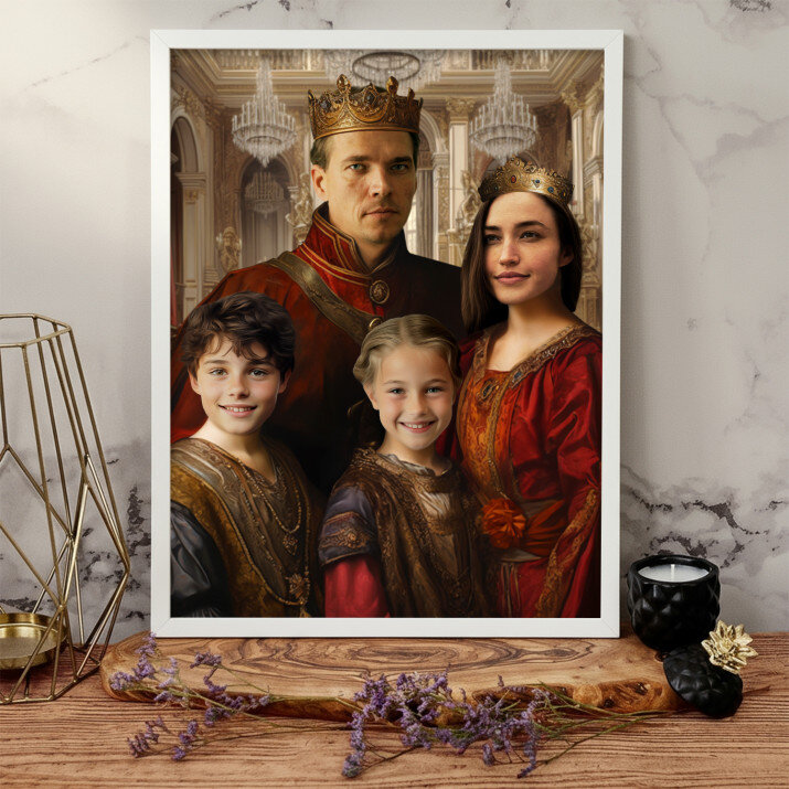 Fii tu eroul Portretului Regal, o imprimare unică, care va fi creată din fotografia trimisă de tine . Un cadou nemaipomenit, datorită căruia persoana iubită se poate simți prințesă, general de armată sau chiar rege! Tot ce ai nevoie este o fotografie de bună calitate, pentru ca graficianul nostru să realizeze un design profesional în stilul ales de Tine. Odată ce ai aprobat designul, vom crea un cadou care îi va impresiona pe cei dragi.REALIZAREA