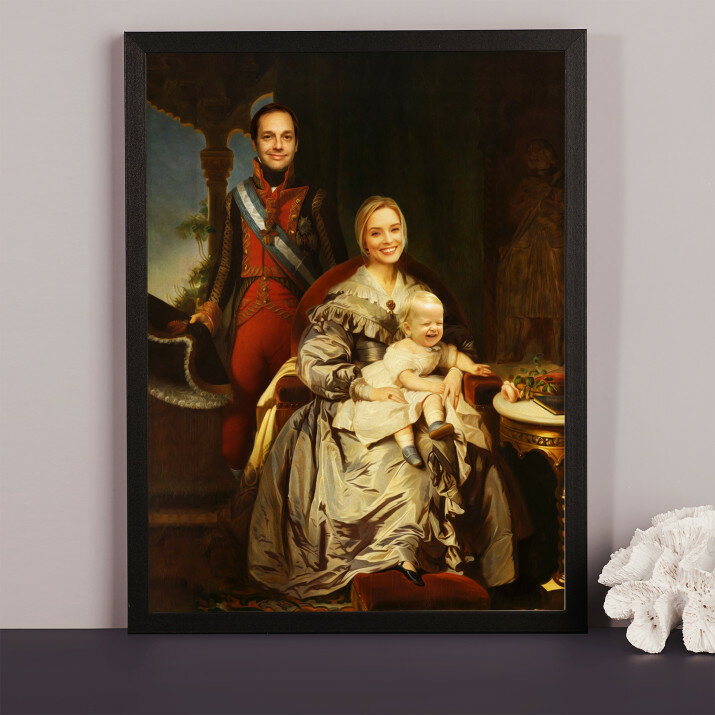 Fii tu eroul Portretului Regal, o imprimare unică, care va fi creată din fotografia trimisă de tine . Un cadou nemaipomenit, datorită căruia persoana iubită se poate simți prințesă, general de armată sau chiar rege! Tot ce ai nevoie este o fotografie de bună calitate, pentru ca graficianul nostru să realizeze un design profesional în stilul ales de Tine. Odată ce ai aprobat designul, vom crea un cadou care îi va impresiona pe cei dragi.REALIZAREA