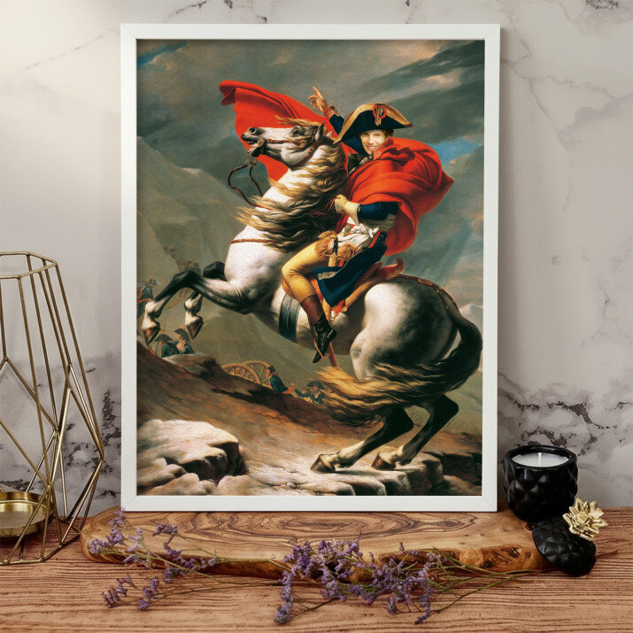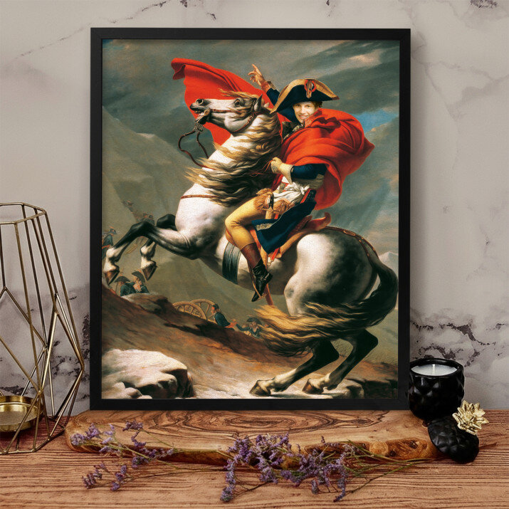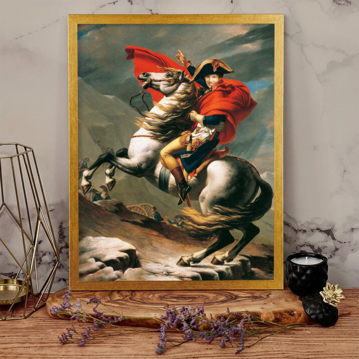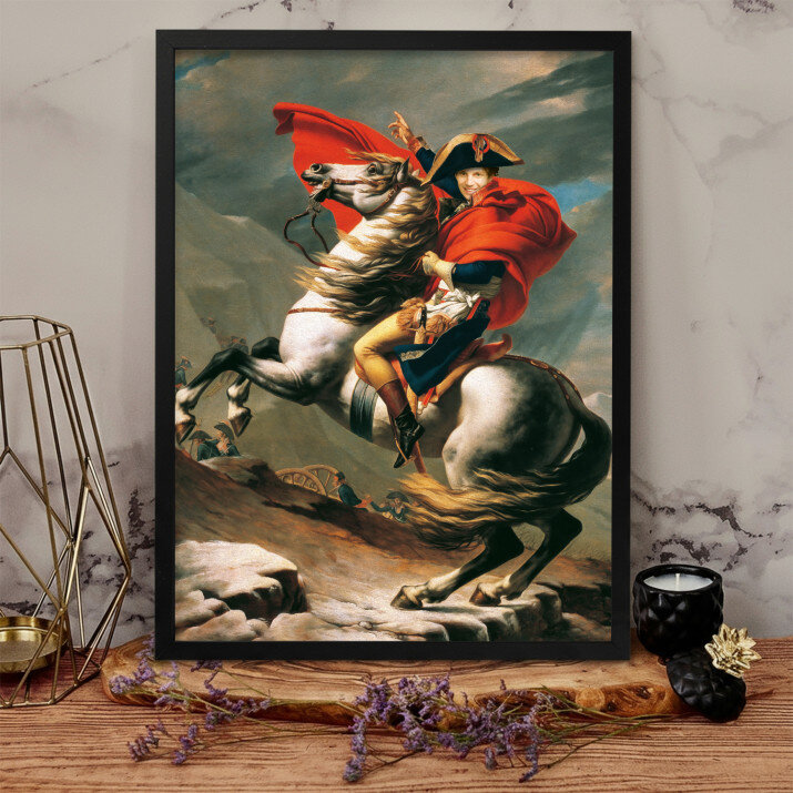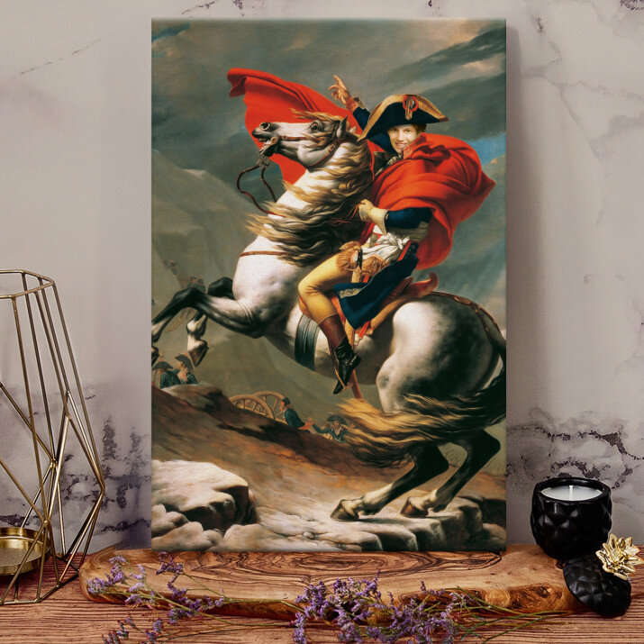 Acest tablou pe pânză cu portretul lui Napoleon pe cal este o adevărată capodoperă. Detaliul unic și vividitatea culorilor sunt impresionante.